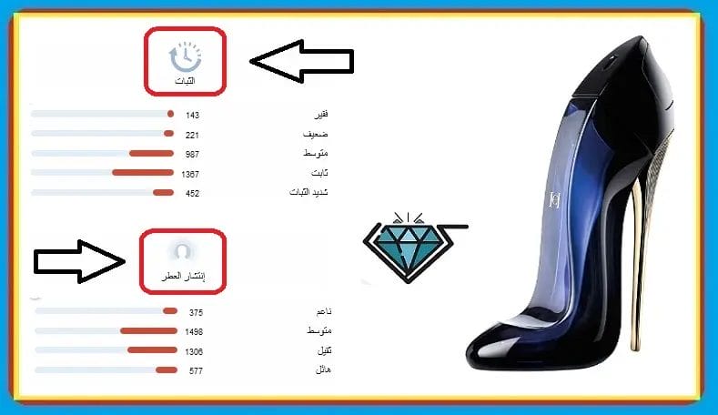 رأيكم في عطر قود جيرل؟ هل عطر جود جيرل ثابت؟ أسئلة كثيرة تدور عن أراء وتجارب مستخدمي عطر Good Girl من كارولينا هيريرا قبل الشراء. الآن سوف نستعرض معكم تقييم مستخدمي العطر الأصلي من حيث ثبات وفوحان وانتشار عطر كارولينا هيريرا الأصلي. البداية مع ثبات العطر وقد حصل على تقييم مرتفع يتراوح بين متوسط إلى ثابت. أما بالنسبة إلى فوحان وانتشار عطر Good Girl فقد حقق أيضاً تقييم مرتفع يتراوح بين متوسط إلى ثقيل. بصورة عامة العطر جيد ومقبول من حيث الثبات والانتشار. عطر ساحر من عند استخدامه يليق بالمرأة القوية الواثقة في نفسها.